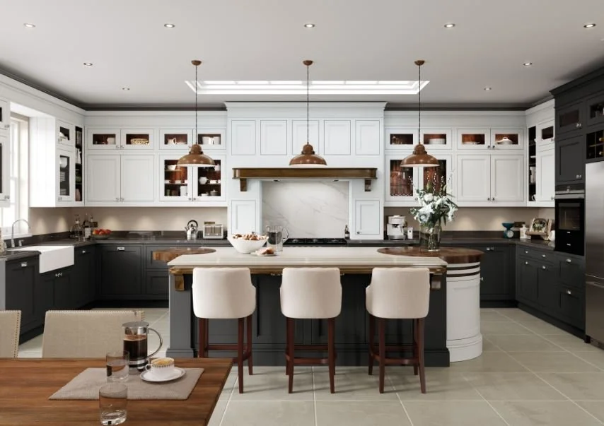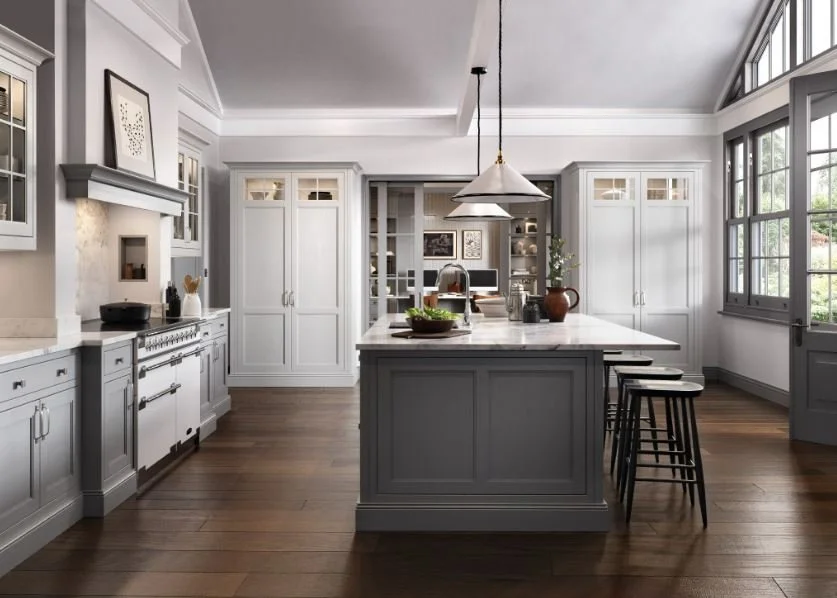 With its sumptuous finish and thoughtful detailing, the Sutton kitchen adeptly shows how traditional can meet modern with outstanding results. The shaker-style door design fuses beautifully with the double cornice and imposing overmantle, resulting in a spacious and elegant space.
